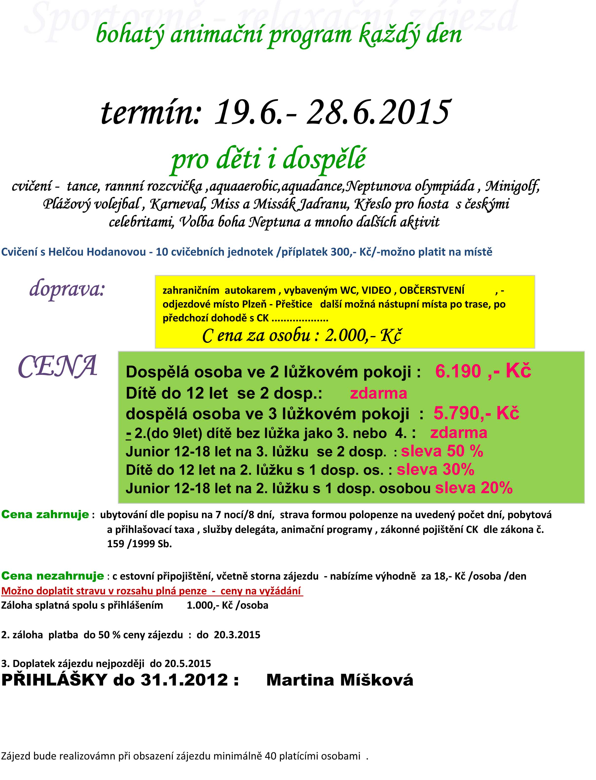 Dovolená se cvičením! Chorvatsko a za dost dobré peníze! :-) Helča 14.1.2015 Ve spolupráci s Kulturním a komunitním centrem v Přešticích Vás zveme na krásnou dovolenou se cvičením. Chorvatsko – Baška Voda – velmi vhodné pro rodiny, maminky s dětmi – i finančně. Připravme se na letní prázdniny příjemnou dovolenou.