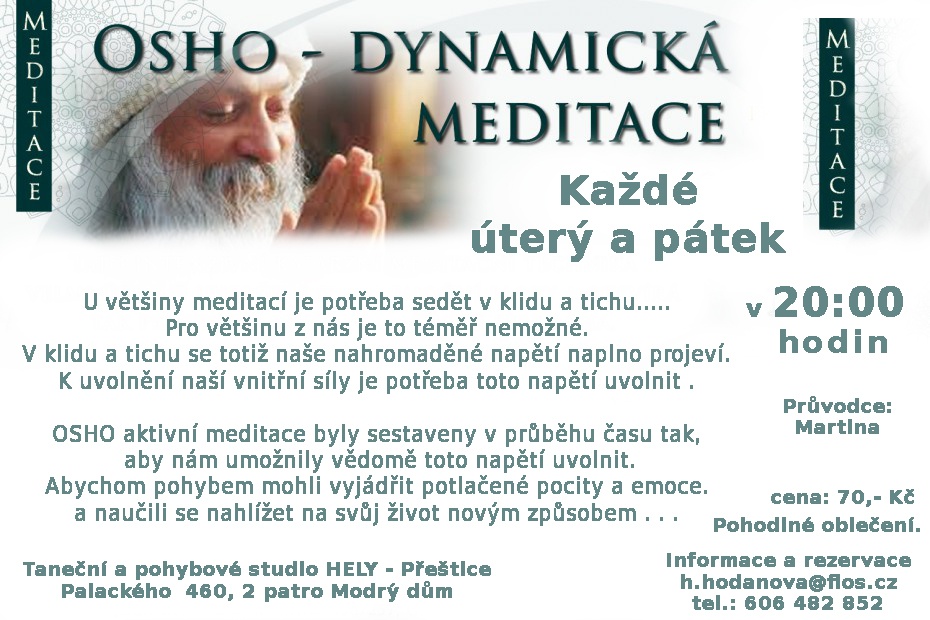 Dynamická meditace pro očistu těla i duše. Helča 6.1.2015 Najděte své tělo i duši díky dynamické meditaci pravidelně v úterý a pátek od osmi hodin. Krásně se připravíte na spánek a další nádherný den. 🙂 očista těla i duše v Přešticích