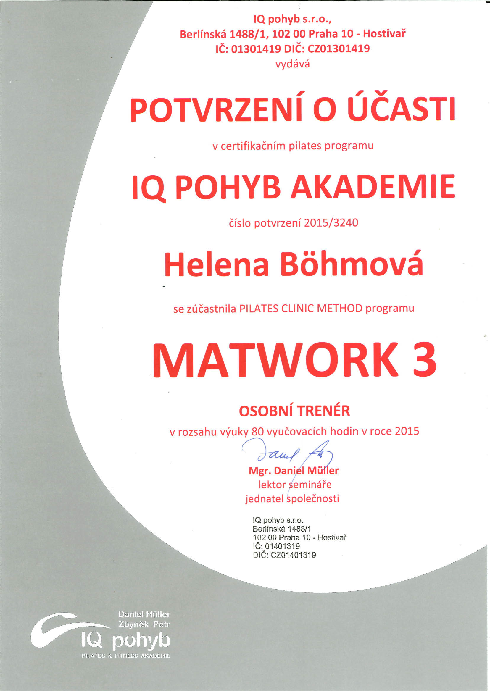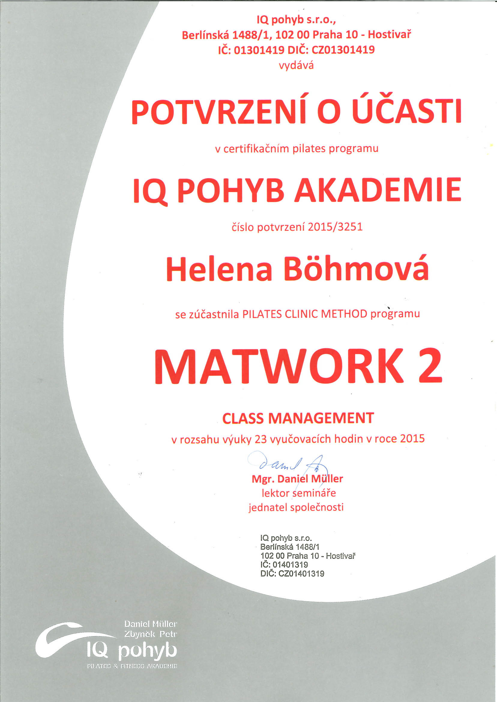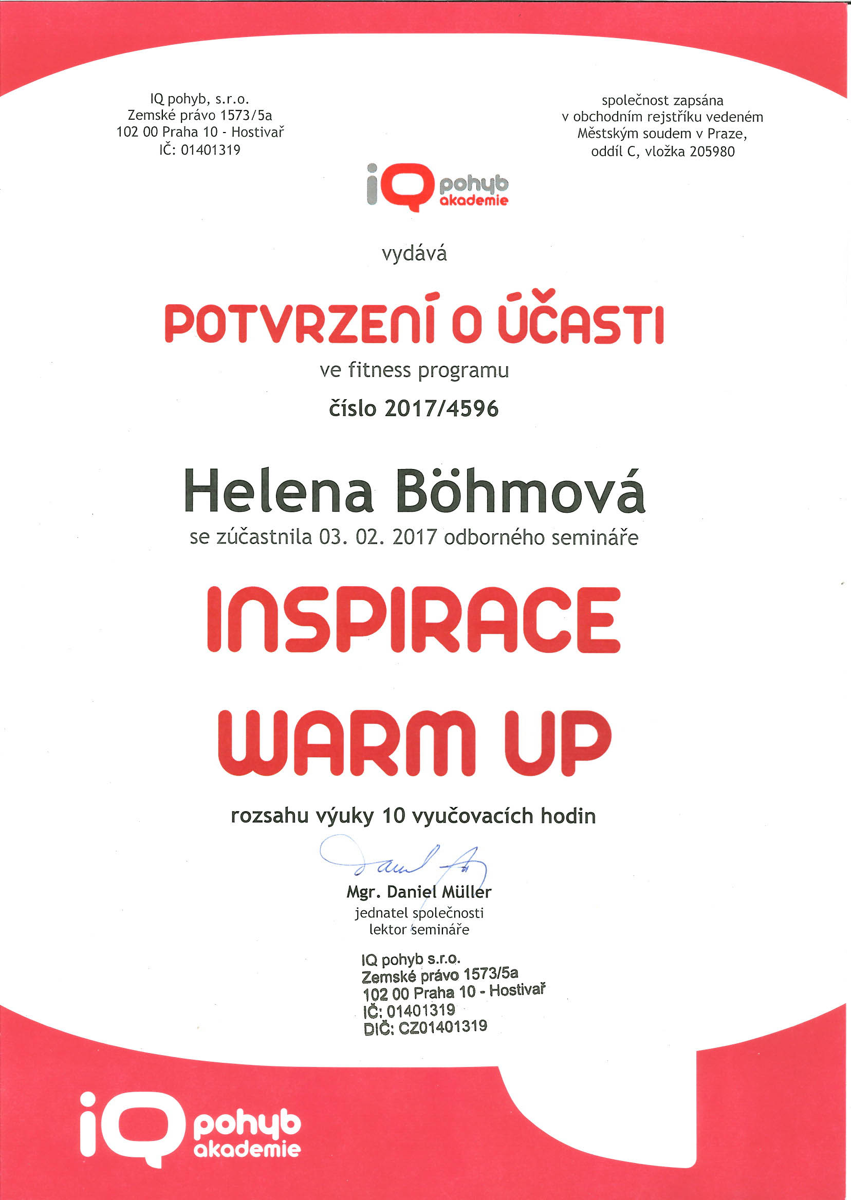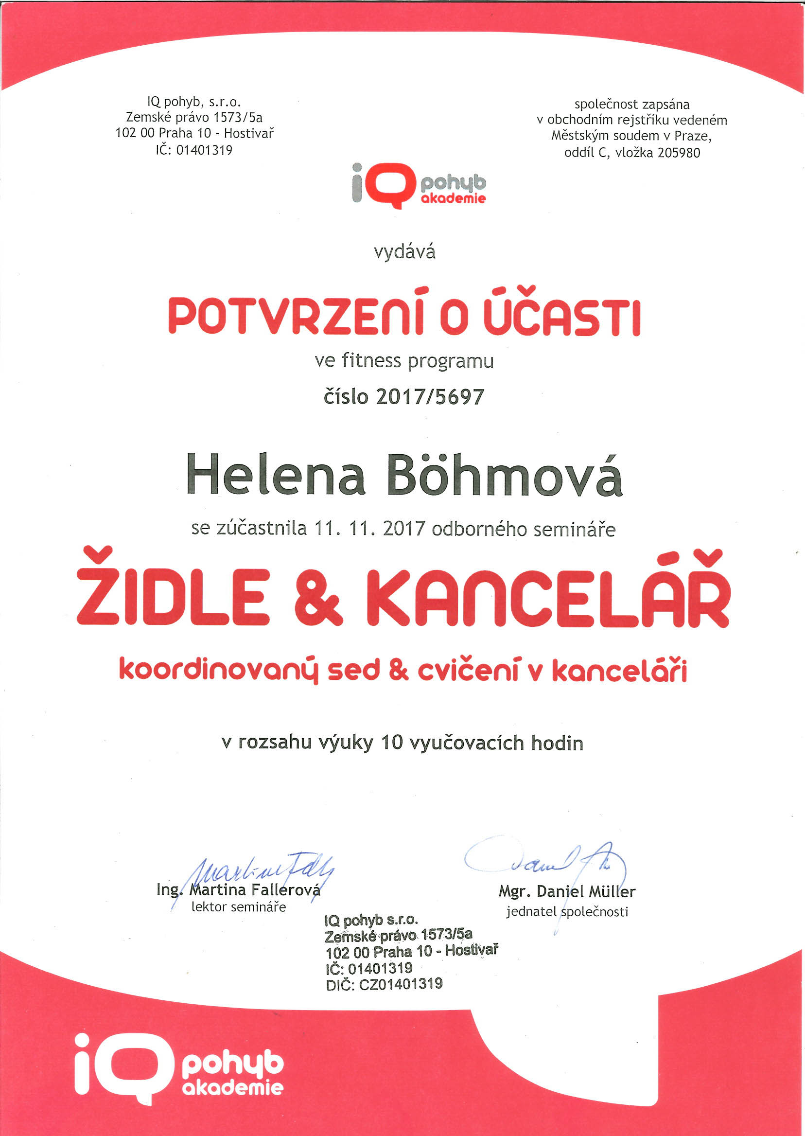 Je dobré občas si zajít na školení :-) Helča 3.1.2018 Je třeba aby každý lektor se na svoji specializaci vyškolil. A tak pár certifikátů … 🙂 Ale také je důležité vzdělávat se stále a získávat nové informace. I obor fitness se mění a zdokonaluje. 🙂