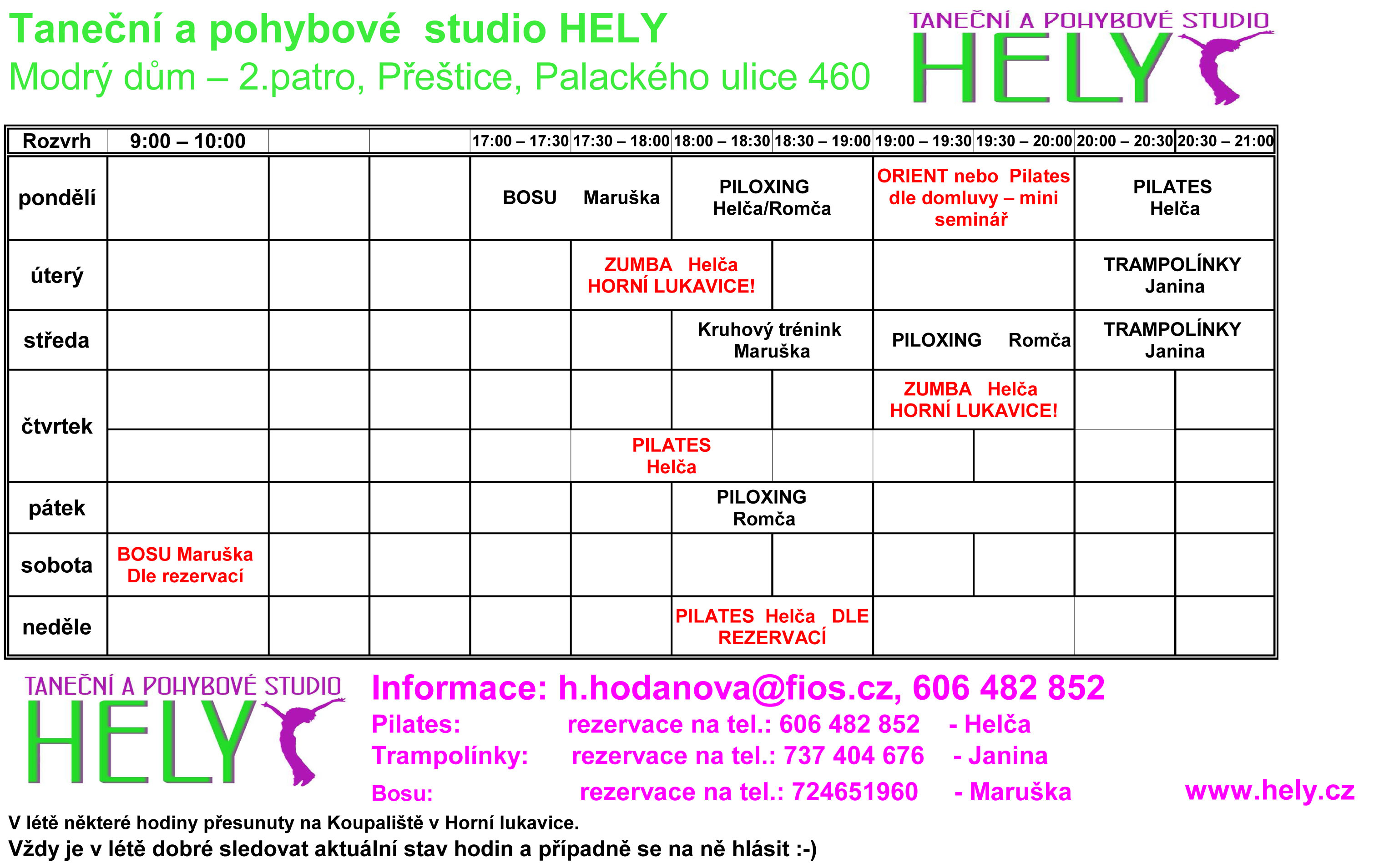 Pozor pozor, již nám nadchází letní měsíc, kdy se jezdí na dovolené k vodě a podobně a proto se upravují rozvrhy cvičení.
